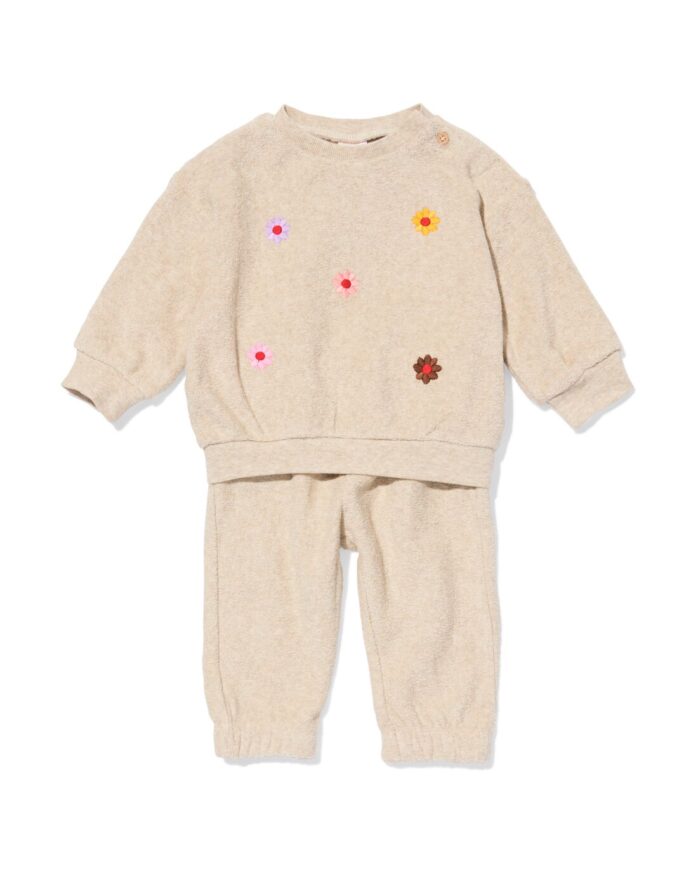 HEMA HEMA Baby Kleding Sweatset Bloemen Zand (zand)
